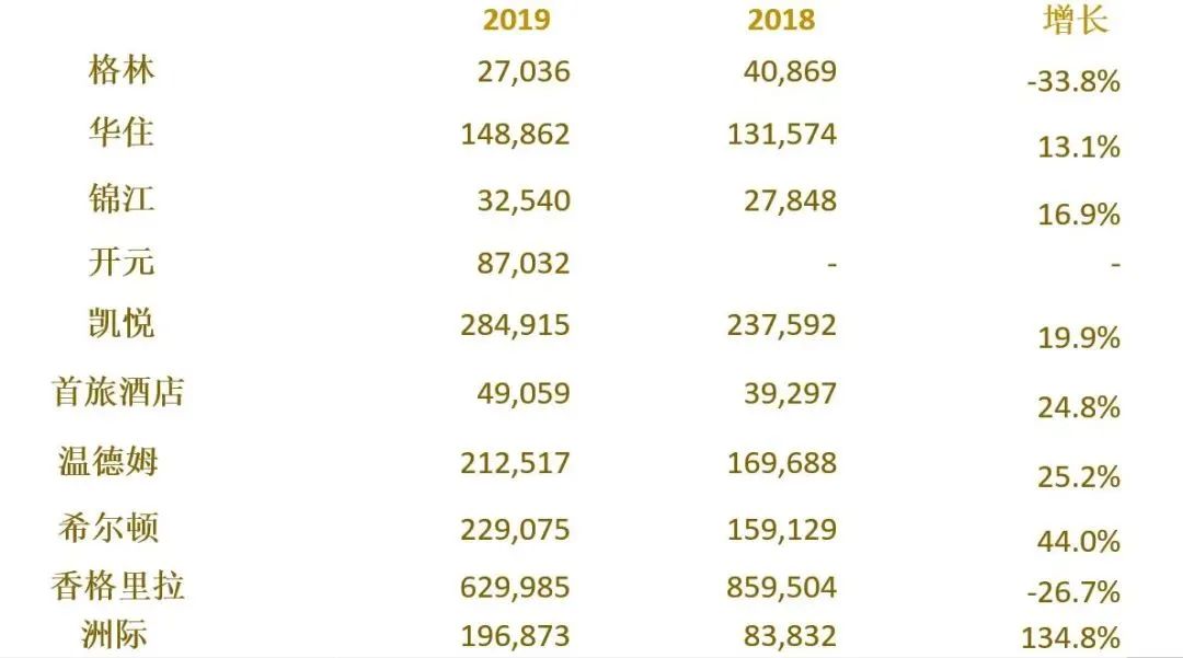 首先我们看2019年饭店集团的规模,依然以客房量方式排序。这里我想提示大家注意以下几点: