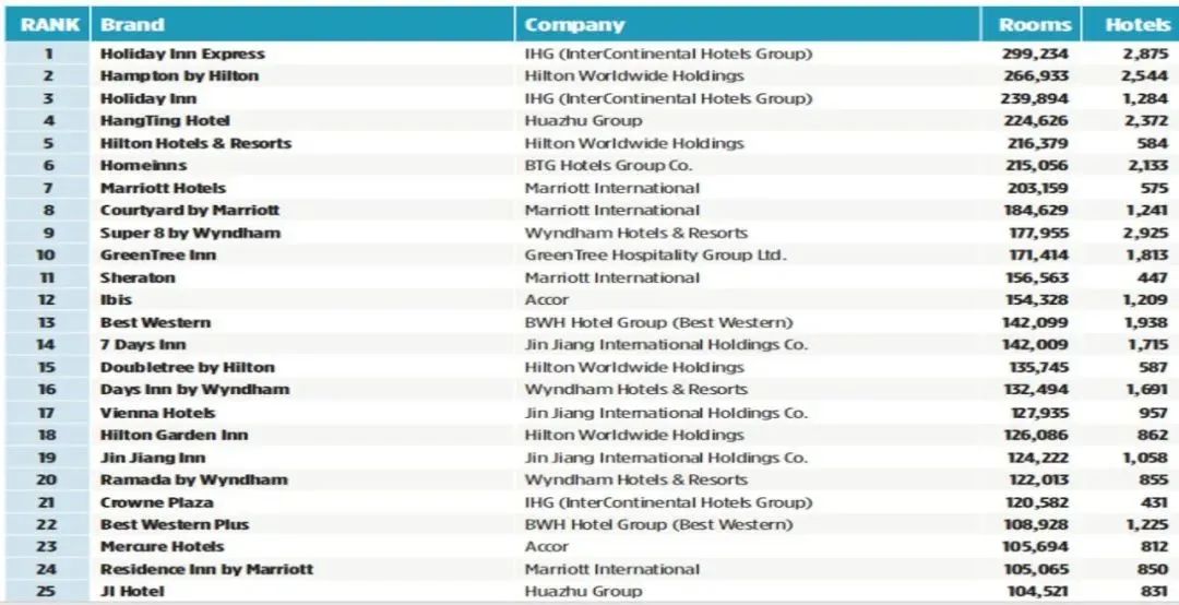 覆盖面最广泛的25个饭店品牌