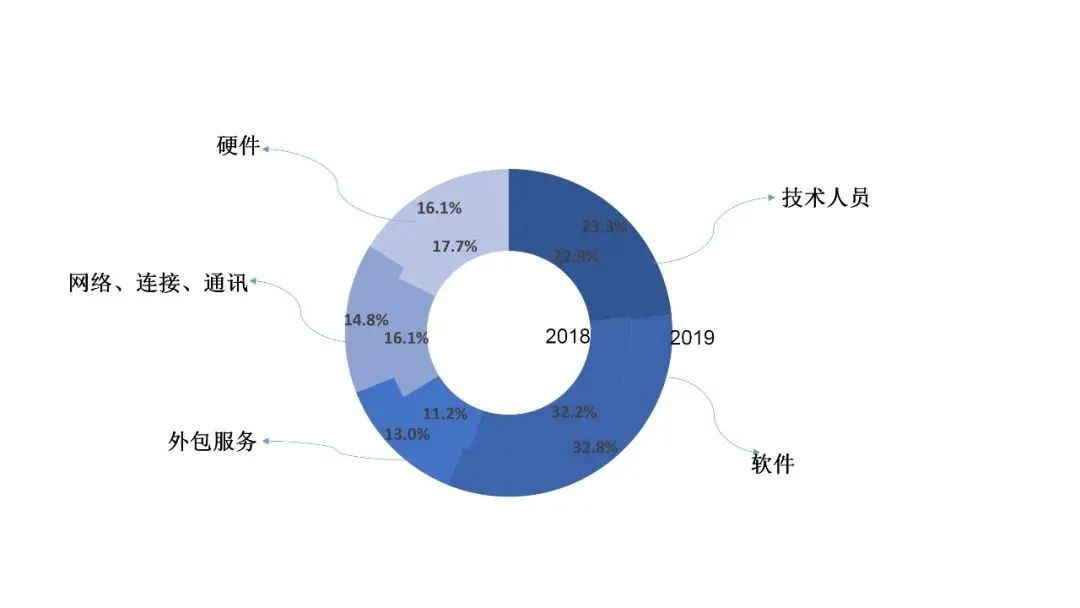 2019年按不同领域和科技投入细项划分与2018年相比变化不大。信息化系统的投入2019年绝大部分项目都比2018年有所增长,其中饭店集团在智能技术方面的投入较所有项目更大,人工智能方面,2019年集团的投入明显在增加。越来越多的饭店感觉到科技投入需要用更加科学的办法来操作,其中一个重要理念就是技术需要融入场景,找到切入点。
