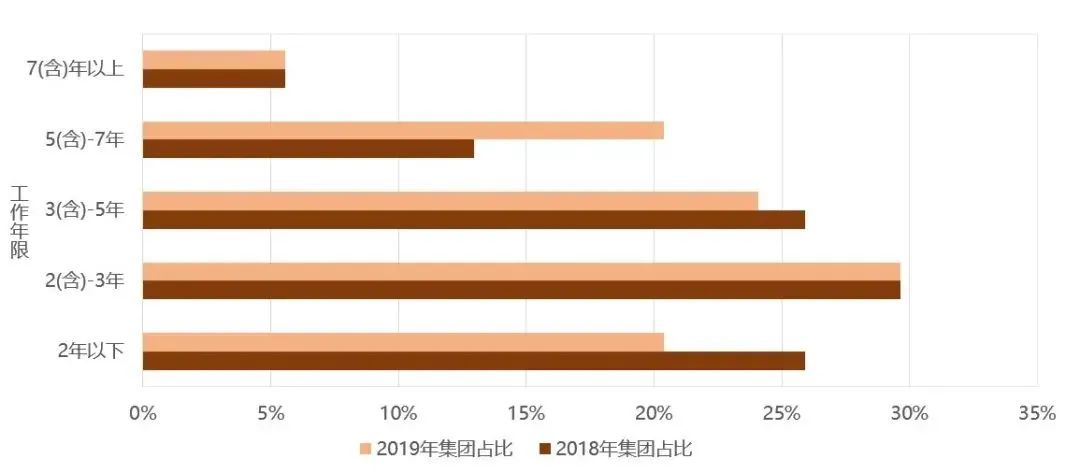 再来看人力资源的情况。外派团队中30%以上的流失率是8.8%,10%-20%的流失率是24.6%,没有流失的占10%。外派总经理的工作年限,2019年比2018年变化最大的是两年以下和5-7年,一降一升,也许有偶然的因素。