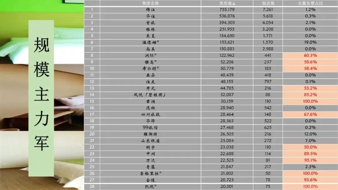全服务型饭店集团规模排序