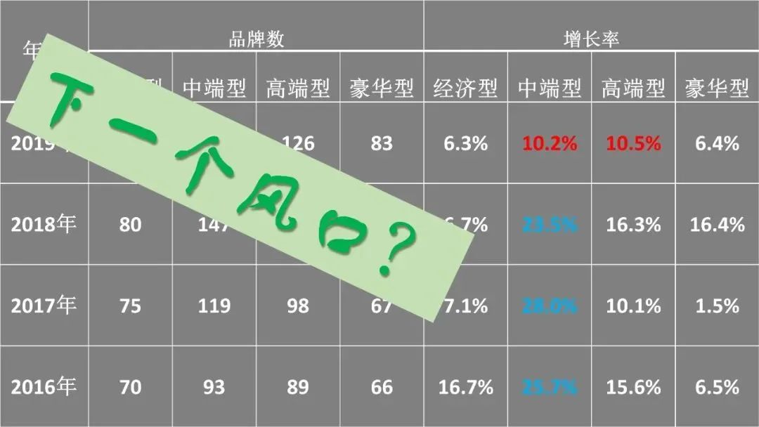 2016-2019年不同档次饭店品牌增长率